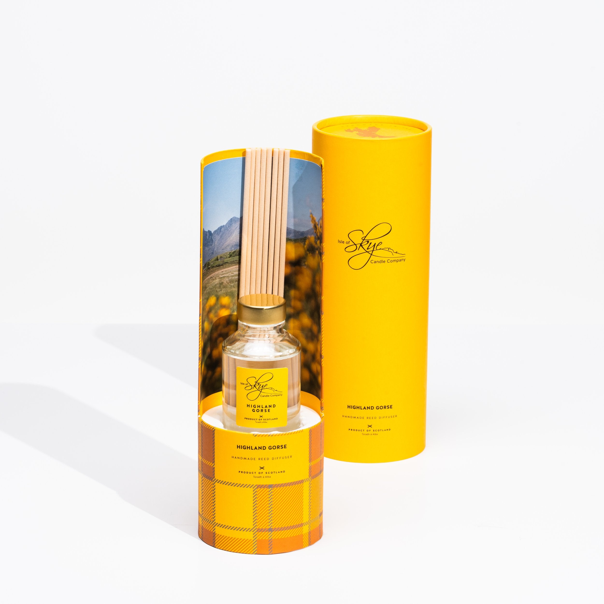 Bring the scent of a Highland spring in, with our fresh sweet gorse fragrance. Combining warm sweet balsamic floral and green herbaceous notes that rest on a base containing Scots pine, cedar wood and amber. It’s said that when gorse is out of bloom, kissing is out of fashion. The reason for this saying is because somewhere in Scotland, there is always a gorse bush blooming. So, in turn, kissing will never go out of fashion. Although there is always some gorse in bloom somewhere, spring is when we are treated to the full effect of gorse’s vibrancy and beautiful coconut aroma. The way it brightens up the countryside with its sunshine yellow colour is an instant mood booster.